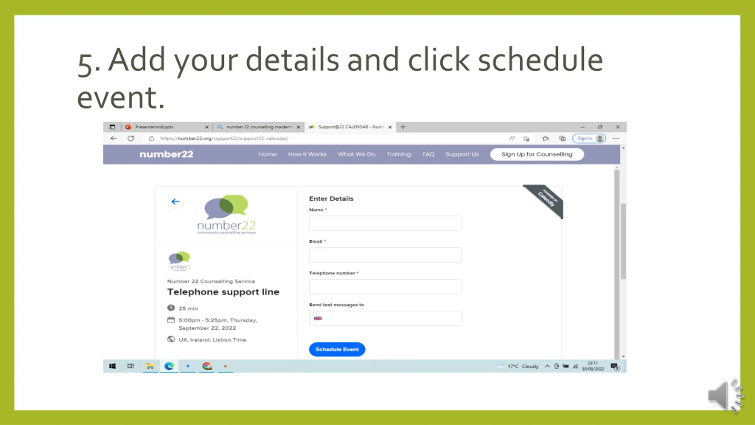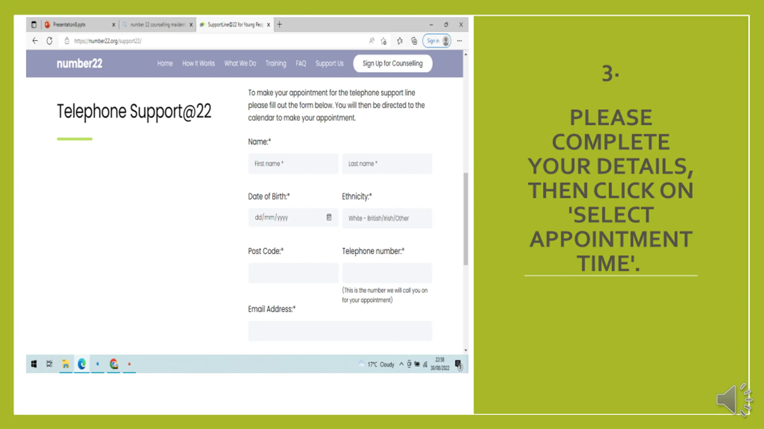 3. PLEASE COMPLETE YOUR DETAILS, THEN CLICK ON 'SELECT APPOINTMENT TIME'.