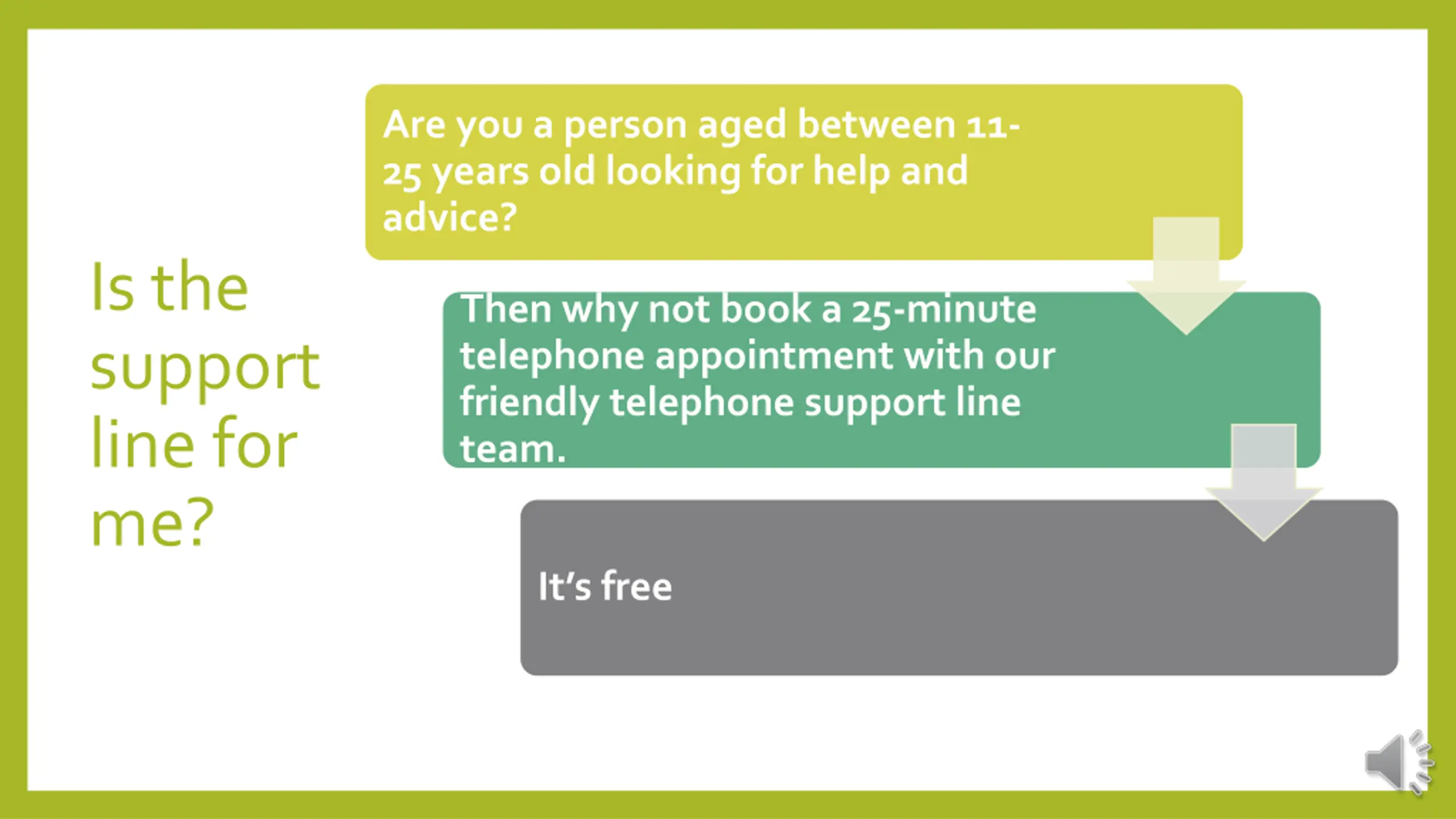 Are you a person aged between 11- 25 years old looking for help and advice? Is the support line for me? Then why not book a 25-minute telephone appointment with our friendly telephone support line team. It s free