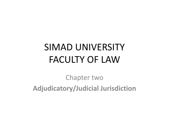 SIMAD UNIVERSITY FACULTY OF LAW Chapter two Adjudicatory/Judicial Jurisdiction